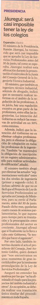 "Jáuregui: será casi imposible tener la ley de los colegios" (Periódico Expansión) 27/05/2011