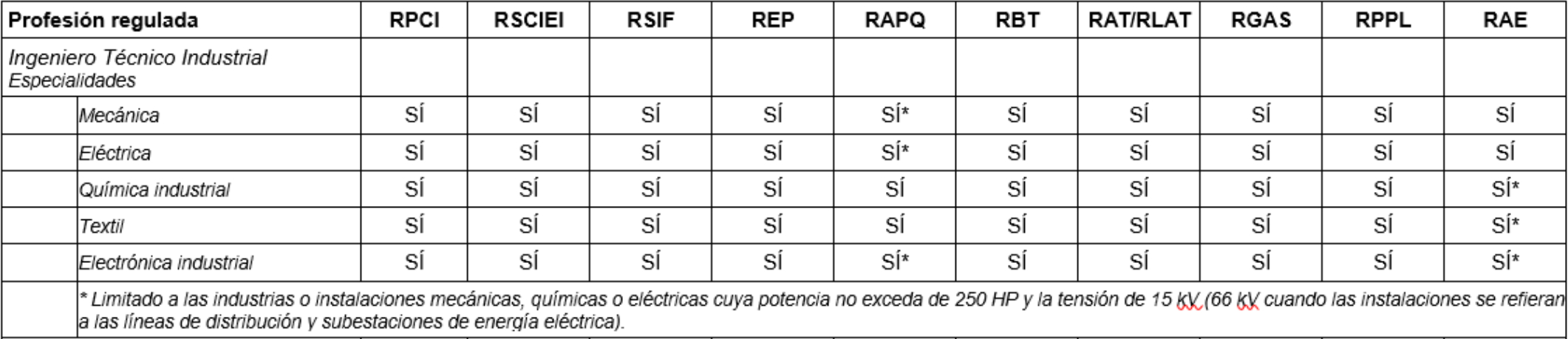 Atribuciones Profesionales de las titulaciones habilitantes a la profesión de Ingeniero Técnico Industrial en el ámbito de los Reglamentos de Seguridad Industrial