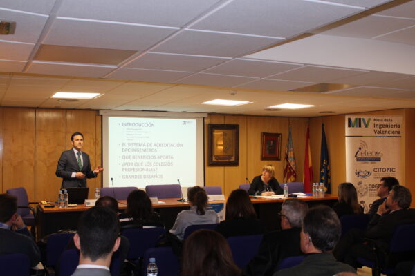 El presidente del COGITI pronunció sendas conferencias sobre el Desarrollo Profesional Continuo y el acceso a la Función Pública, en COGITI Valencia El Colegio de Ingenieros Técnicos Industriales de Valencia acogió, el pasado 20 de febrero, la Jornada “La evolución hacia la excelencia profesional”, organizada por la Mesa de la Ingeniería Valenciana, donde se habló del desarrollo profesional continuo o de la certificación de personas, entre otros asuntos de interés para los ingenieros.
