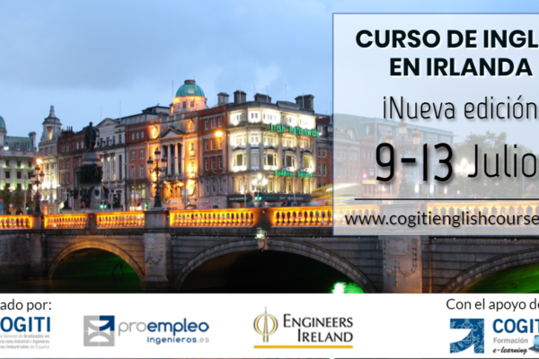 Abierto el plazo de inscripción del 9º Curso intensivo de inglés para ingenieros en Irlanda, que se desarrollará del 9 al 13 de julio Debido al éxito de todas las ediciones anteriores, el COGITI organiza una nueva edición del Curso intensivo de inglés para Ingenieros, que en esta ocasión se desarrollará del 9 al 13 de julio en Dublín, y dentro del marco de colaboración que mantiene con la Asociación de Ingenieros de Irlanda (Engineers Ireland), desde el año 2014.