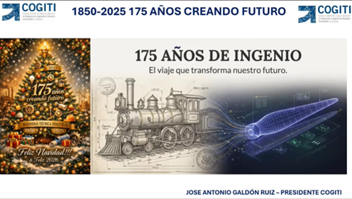 Video balance de 2025 y deseos para 2026: 175 años creando futuro El presidente de COGITI, José Antonio Galdón Ruiz, nos habla en este video sobre la situación actual de la profesión, la Ingeniería Técnica Industrial, analizando los 175 años de historia y los retos de futuro.