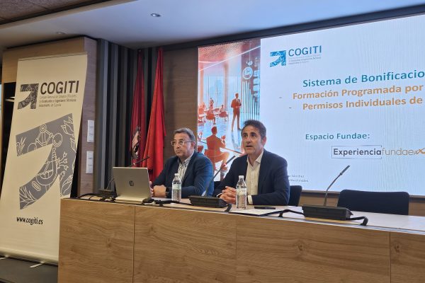 COGITI y FUNDAE organizan una jornada informativa sobre el “Sistema de bonificaciones para empresas y trabajadores” La jornada, celebrada en un formato híbrido (presencial y telemático) en la sede del COGITIM, tenía por objeto informar a los miembros del colectivo profesional sobre el sistema de bonificaciones para empresas y trabajadores y, al mismo tiempo, resolver todas las dudas y cuestiones que les pudieran surgir en torno a este tema.