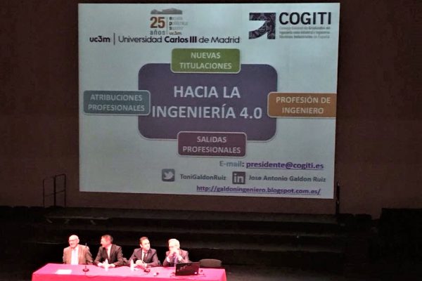 La Escuela Politécnica Superior de la Universidad Carlos III de Madrid acogió una conferencia del presidente del COGITI, José Antonio Galdón El pasado 4 de diciembre, el presidente del COGITI, José Antonio Galdón Ruiz, pronunció su conferencia “Hacia la Ingeniería 4.0 y salidas profesionales” en la Escuela Politécnica Superior de la Universidad Carlos III de Madrid (campus de Leganés), donde habló sobre la evolución de las titulaciones y el acceso a la profesión de Ingeniero Técnico Industrial, entre otros temas de interés.