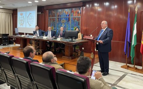 En la mesa acompañaron al decano, Manuel León, la delegada territorial de Economía, Hacienda, Fondos Europeos y de Industria, Energía y Minas en Huelva, Lucía Núñez; el primer teniente alcalde de Urbanismo y Medio Ambiente del Ayuntamiento de Huelva, Felipe Arias; y el vicepresidente de la Diputación provincial de Huelva, Manuel Cayuela.