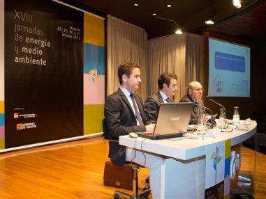 La Jornada del miércoles, 30 de octubre, que versó sobre la «Situación de las energías renovables y su futuro. La nueva legislación», estuvo desarrollada por D. José Miguel Villarig Tomás, Gerente de Molinos del Ebro, S.A. y Presidente de la Asociación de Productores de Energías Renovables, presidida por Dª. Ana Marina Sevilla Tello, Directora General de Energía y Minas de la Diputación General de Aragón, y moderada por D. Juan Ignacio Larraz Pló, Decano del Colegio de Ingenieros Técnicos Industriales de Aragón.